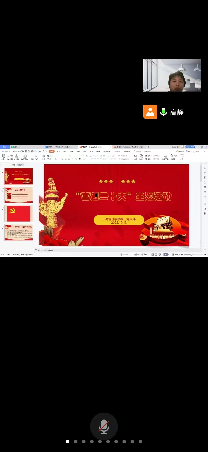 2022年10月13日下午两点半,工商教工党支部在腾讯会议开展了“红心永向党、喜迎二十大”的主题党日活动。