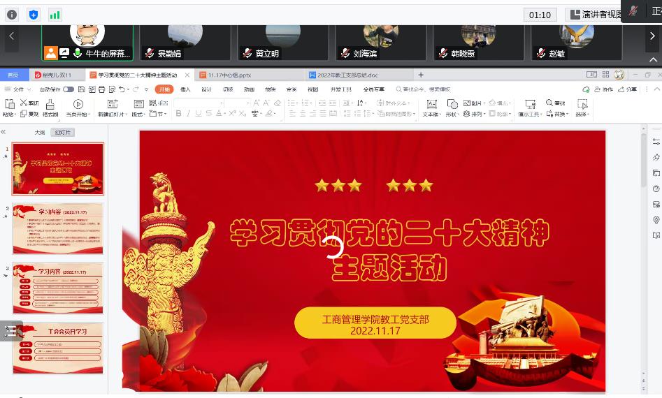 为深入推动习近平新时代中国特色社会主义思想和党的二十大精神入脑入心,迅速掀起学习宣传贯彻党的二十大精神的高潮,11月17日下午,BEAT365英国官网教工党支部在腾讯会议举行了党的二十大精神主题学习活动。