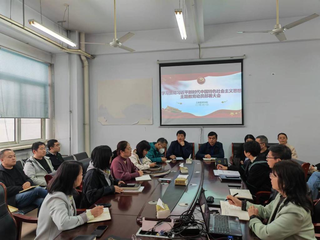 2023年4月25日下午四点,BEAT365英国官网在A608召开学习贯彻习近平新时代中国特色社会主义思想主题教育动员部署大会,学院党政领导班子,全体党员老师参加了会议。