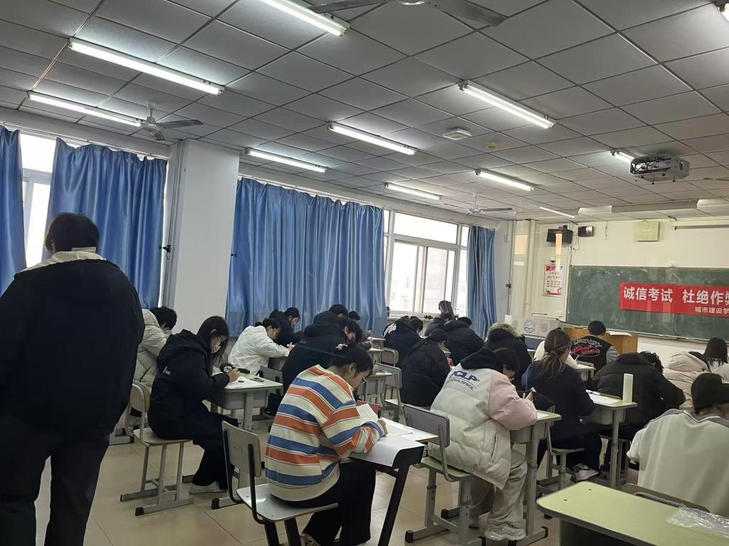 为顺利完成期末考试工作,学院及时转发教务处关于考试的通知,并确保通知到每位学生及主监考教师。通过学院会议认真传达教务处下达的关于考试的文件精神,按照学校关于三风建设的要求,考试前,要求每位监考教师认真履行监考职责,熟记监考注意事项,认真查阅自己的监考场次及时间地点,有问题及时处理解决;考试时,为确保监考教师及时到岗,学院要求每位监考教师提前上好提醒闹钟,提前15分钟进考场,监考过程中出现不能解决的问题及时向学院进行反馈。学院督导组成员、班子成员及学工办根据考试安排进行合理分工,做到全覆盖巡考,考前、考中分时间段进行监督,确保考试公平公正。