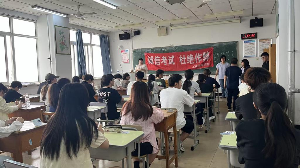 为顺利完成期末考试工作,学院及时转发教务处关于考试的通知,并确保通知到每位学生及主监考教师。通过学院会议认真传达教务处下达的关于考试的文件精神,要求每位监考教师认真履行监考职责,熟记监考注意事项,认真查阅自己的监考场次及时间地点,有问题的及时处理解决;考试时,为确保监考教师及时到岗,学院要求每位监考教师提前上好提醒闹钟,提前15分钟进考场,监考过程中出现不能解决的问题及时与学院进行反馈。期末考试期间学院督导组成员、班子成员及学工办根据考试安排进行合理分工,做到全覆盖巡考,考前、考中分时间段进行监督,确保考试公平公正。