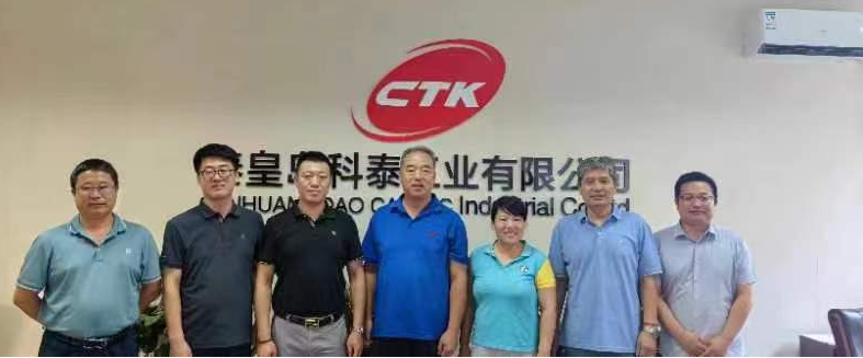 中信戴卡王孝东总经理(中蓝色上衣)和戴卡其他部门经理,秦皇岛科泰工业有限公司总经理(黑色上衣)刘书霞(女)在秦皇岛科泰工业有限公司调研合影
