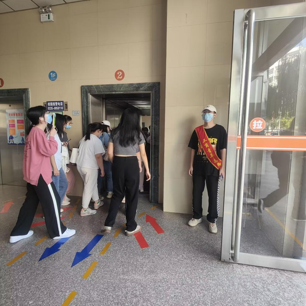 BEAT365英国官网青年志愿者协会招募志愿者,开展文明乘电梯引导工作,在早午的高峰时间段进行电梯疏导,为确保他们之间的安全距离,避免人员堆积造成不文明现象,并提醒同学们科学佩戴口罩,增强同学们自我防护的意识。
