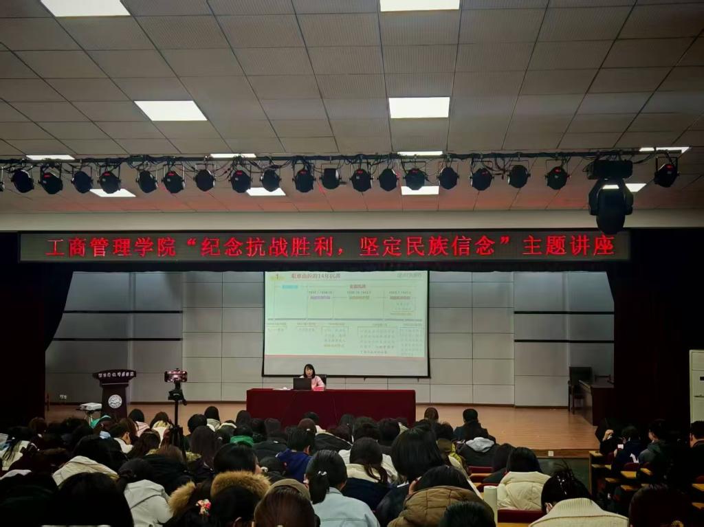 本次活动特邀马克思主义学院李鑫纳老师担任主讲,李老师以“纪念抗战胜利,坚定民族信念”为题,用清晰的时间脉络为主线,系统梳理了“艰难曲折的14年抗战”历程——从九一八事变点燃烽火,到卢沟桥事变全面抗战爆发,从战略防御、战略相持到战略反攻的重要阶段,生动再现了中华民族在存亡危难中顽强抗争的壮阔画卷。讲座中,李老师通过丰富的历史细节与真实故事,深入阐释了抗战精神的核心内涵,引导同学们在回望民族苦难与辉煌中汲取精神力量,深刻体悟今日和平与繁荣的来之不易,进一步增强历史自觉,坚定理想信念。