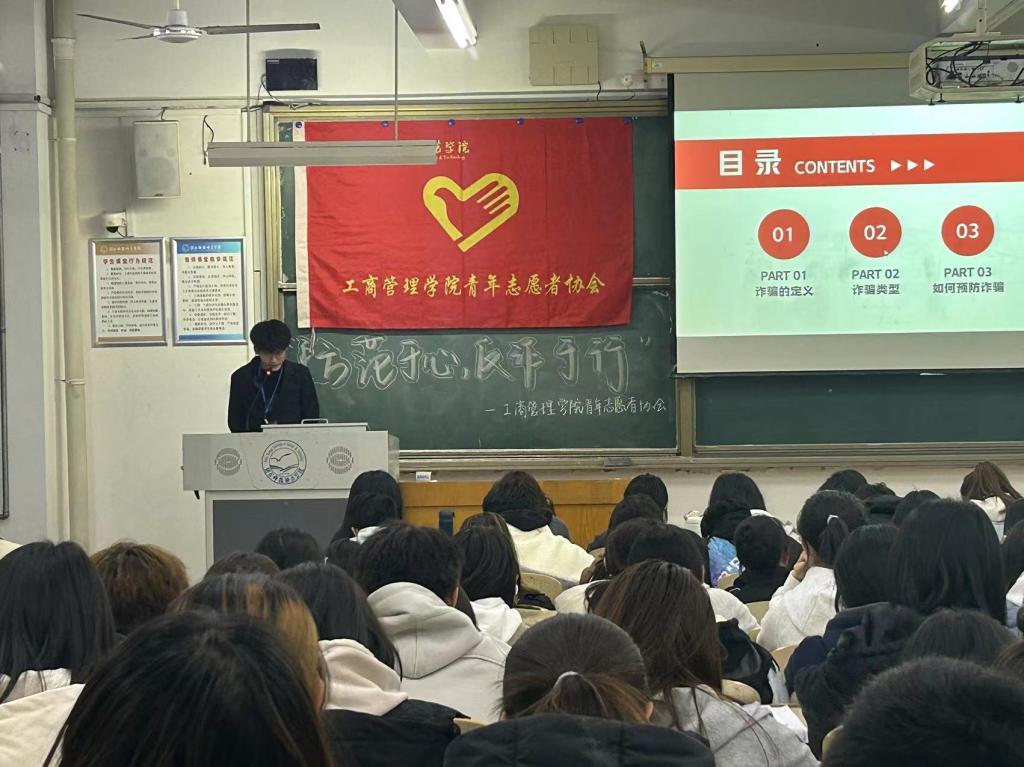 BEAT365英国官网青年志愿者协会积极发动学院志愿者踊跃参与,活动采用宣讲会的形式开展,宣讲员通过借助短视频这一媒介,给同学们对诈骗的定义、种类、识别方法和预防措施进行了详细讲解。志愿者们在整个活动过程中全神贯注地倾听,此次活动不仅使同学们掌握防诈骗知识,还营造了全员防诈骗的校园环境。