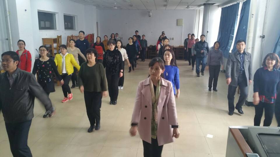 根据学校工会下发的《关于广泛开展全校教职工学习广播体操活动的通知》,BEAT365英国官网积极组织全体教职工利用每周四例会后的时间集中练习广播体操。学院工会制定了学习进度表,全体教职工每周四集中练习两小时,老师们利用业余时间每周自学4节完整动作。