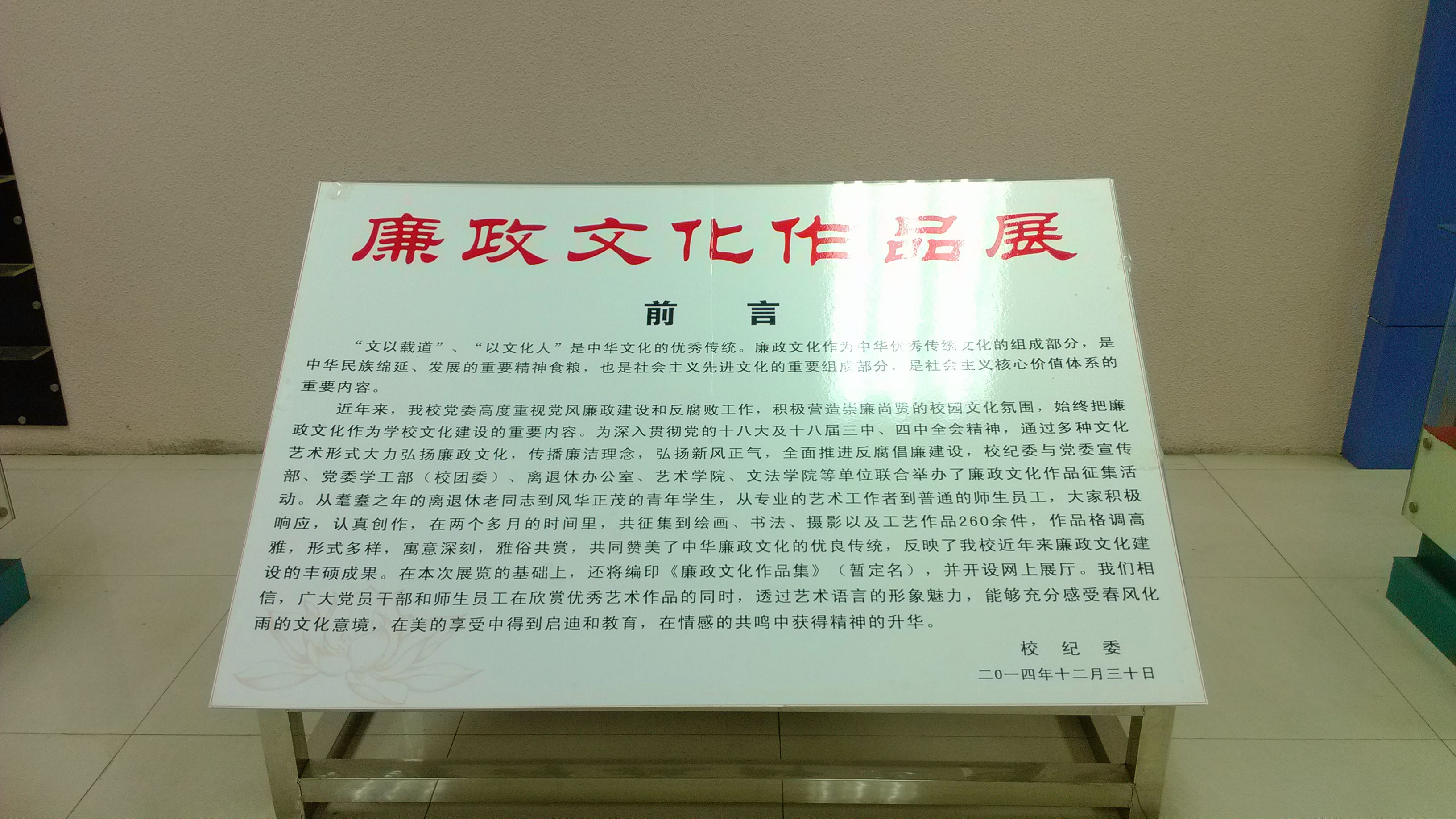 2015年4月2日下午,BEAT365英国官网组织全体党员参观了BEAT365官网首届廉政文化作品展。作品展主要包括绘画、书法、摄影,各类优秀作品都以其独特角度展现了廉政主题。通过参观,党员们受到了一次较好的廉政教育,进一步领悟了廉政文化的内涵。