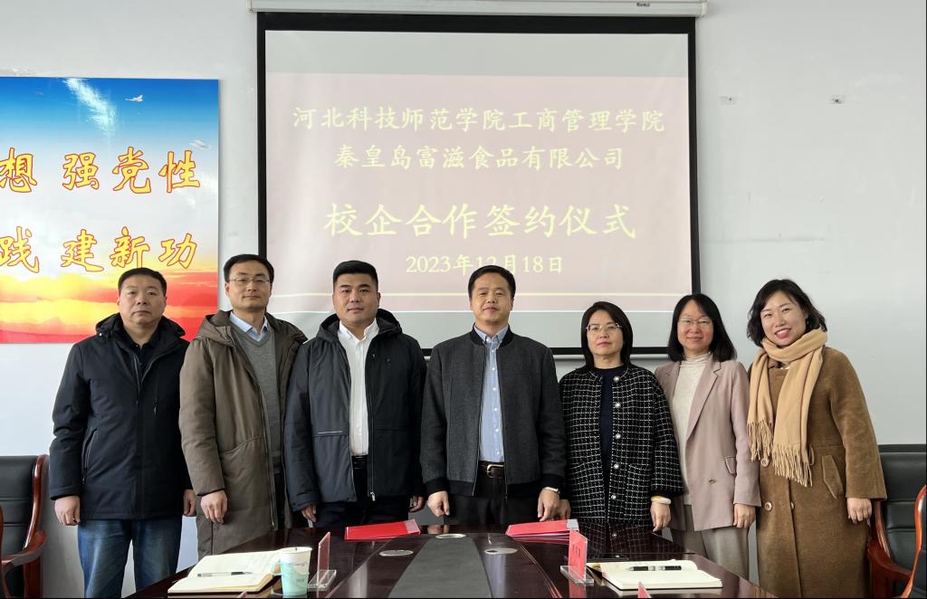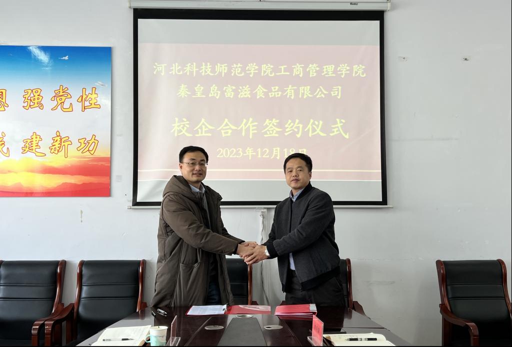 2023年12月18日上午,BEAT365英国官网BEAT365英国官网与秦皇岛富滋食品有限公司校企合作签约仪式在BEAT365英国官网会议室举行,BEAT365英国官网出席的人员有领导班子成员以及市场营销教学部专业老师代表,秦皇岛富滋食品有限公司出席的人员包括董事长、总经理及内销部经理。