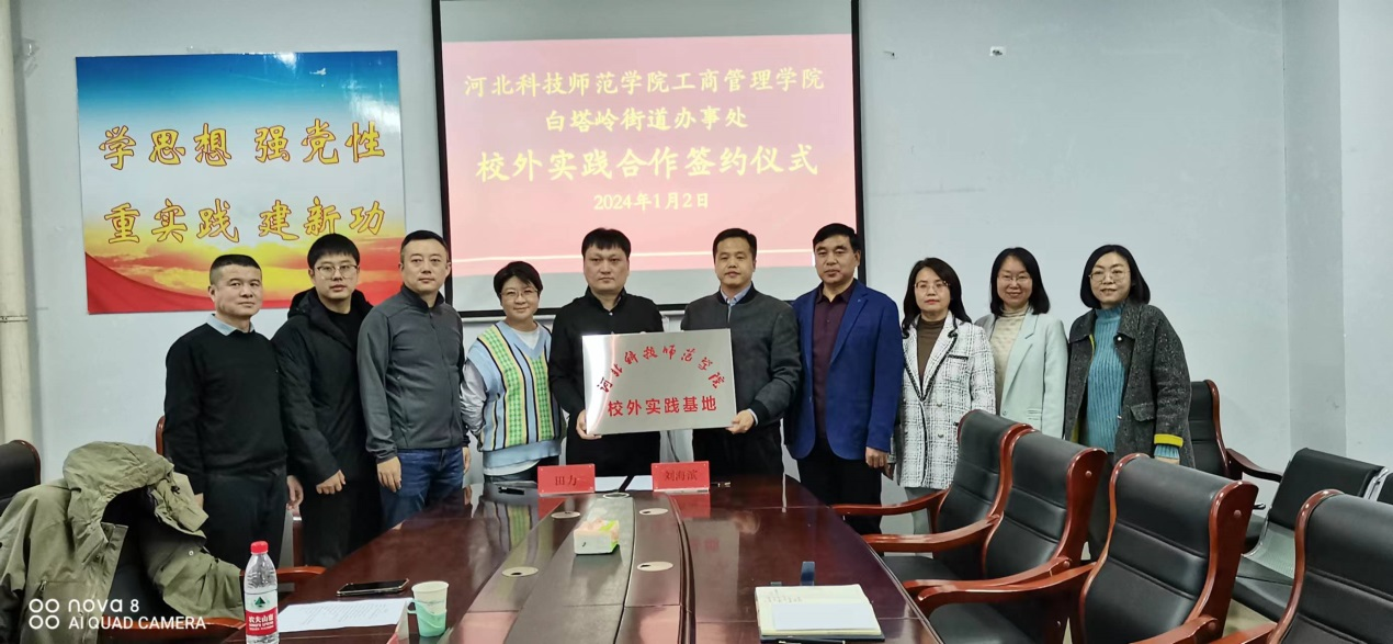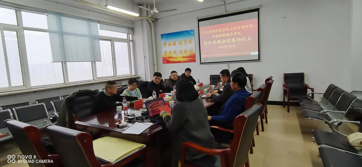 2024年1月2日下午,BEAT365英国官网BEAT365英国官网与秦皇岛市白塔岭街道办事处校外实践合作协议签约仪式在逸夫楼608会议室举行。出席本次签约仪式的有BEAT365英国官网领导班子成员及人力资源教学部教师代表,白塔岭街道办事处党工委书记、党工委副书记、办事处主任、组宣委员及党建办主任等五位领导。