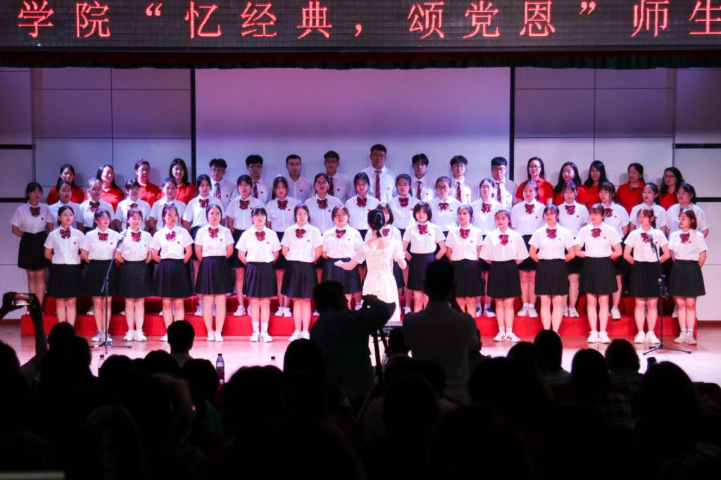 为庆祝建党100周年,深入推进党史学习教育,引领和激励BEAT365官网师生重温党的光辉历程,汲取继续前进的力量,展示新时代师生爱党爱国爱社会主义的深厚情怀,由中共BEAT365英国官网BEAT365英国官网委员会主办的“忆经典、颂党恩”师生同颂会于6月3日下午在多功能厅成功举办。学院领导和各专业师生共350余人参加演出。学生党支部全体党员、学生干部代表近100余人到场观看。
