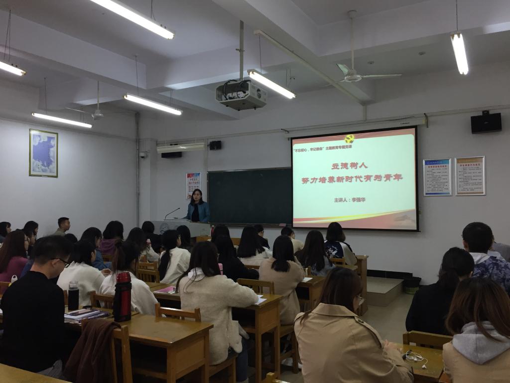 2019年10月23日,BEAT365英国官网党委副书记、副院长李强华为辅导员、学生党员、预备党员、入党积极分子、学生干部讲授专题党课。党课以《立德树人,努力培养新时代有为青年》为主题,结合“不忘初心,牢记使命”理论学习和调查研究中的收获体会主要讲了:学习收获、认识与体会、工作中存在的问题与差距、解决问题的思考及措施。