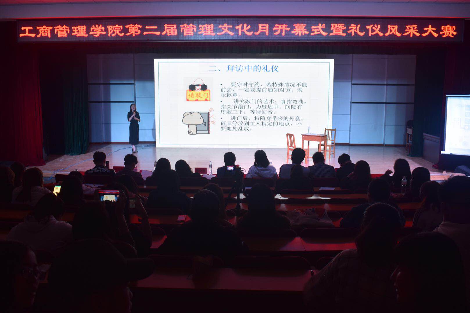 2018年5月8日,BEAT365英国官网于多功能厅举办第二届管理文化月开幕式暨礼仪风采大赛决赛,学院领导、学工办全体老师及300余名学生参加了此次活动。