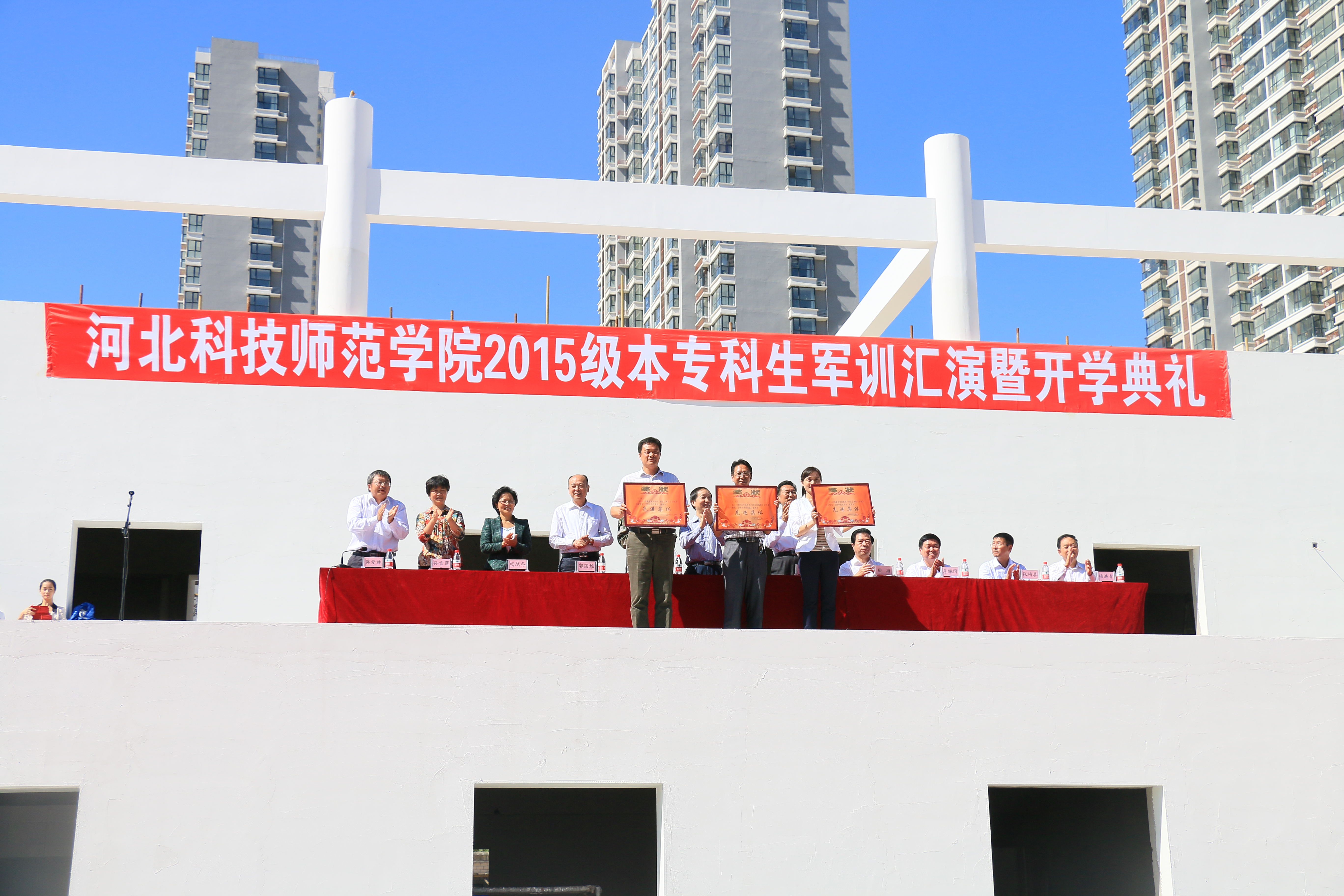 2015年9月26日上午10:30BEAT365英国官网秦皇岛校区于后院操场举行2015级本专科生军训汇演暨开学典礼。