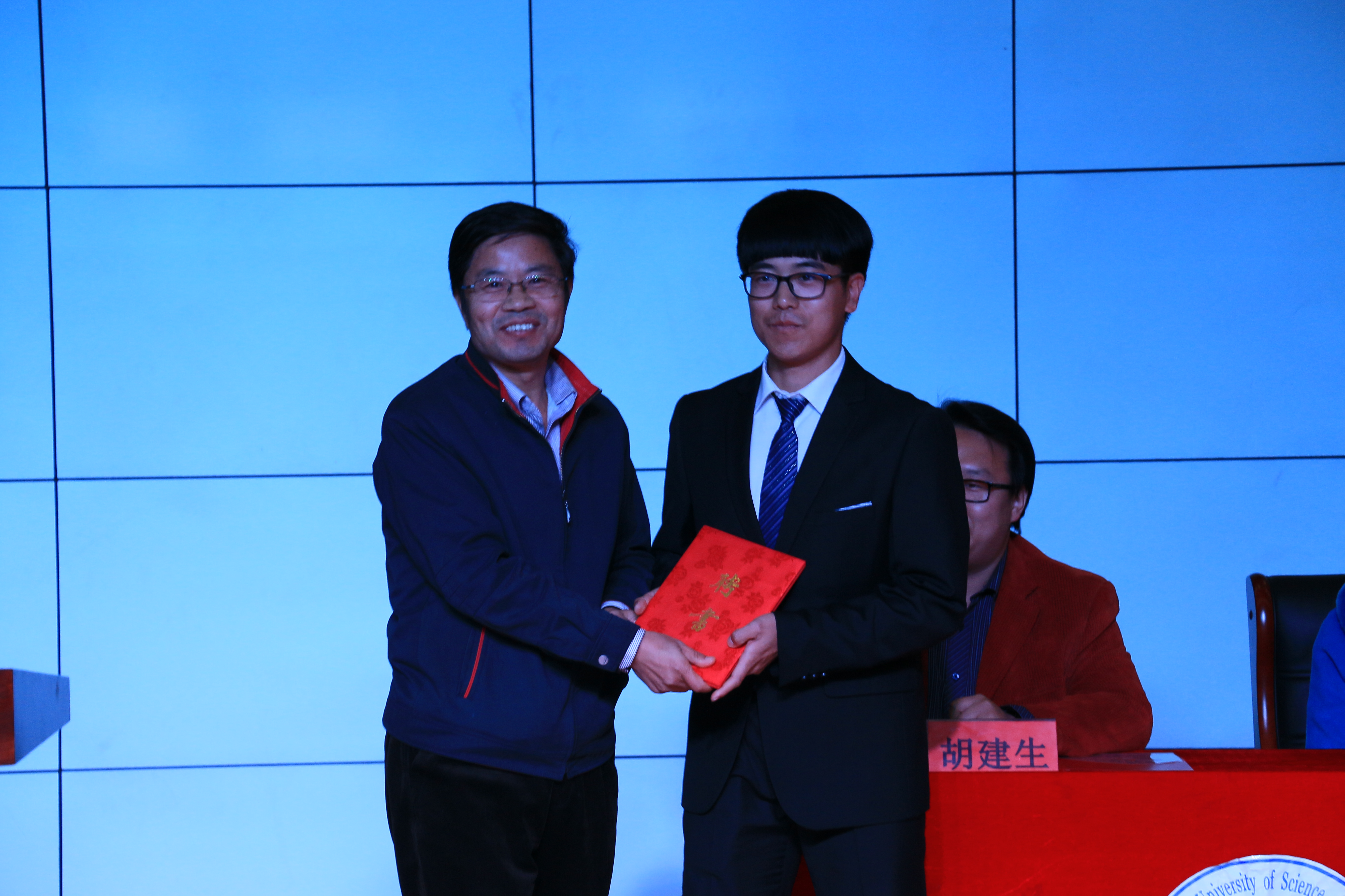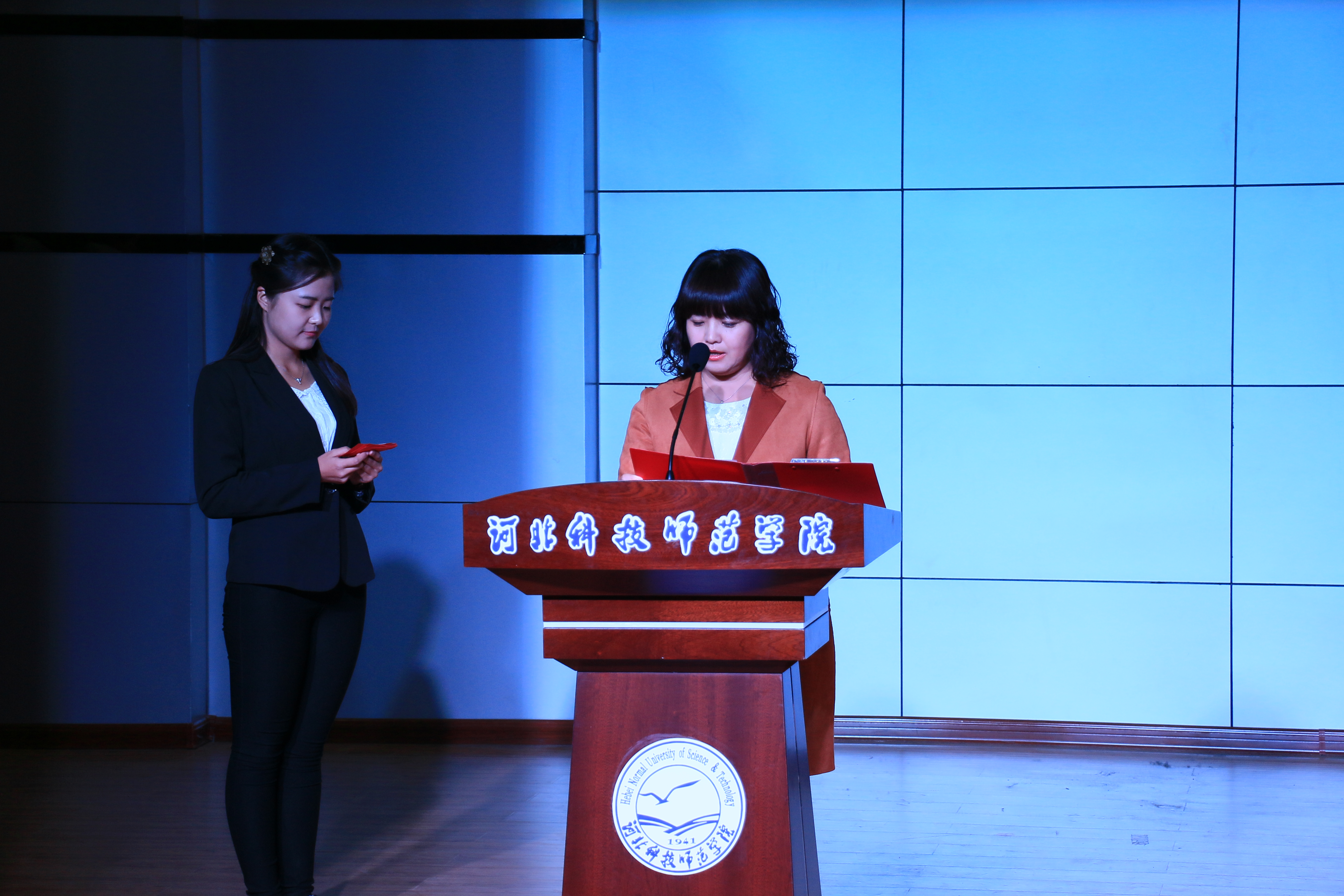 学工办韩晓霞老师和胡老师为2015届学生会部长副部长颁发证书