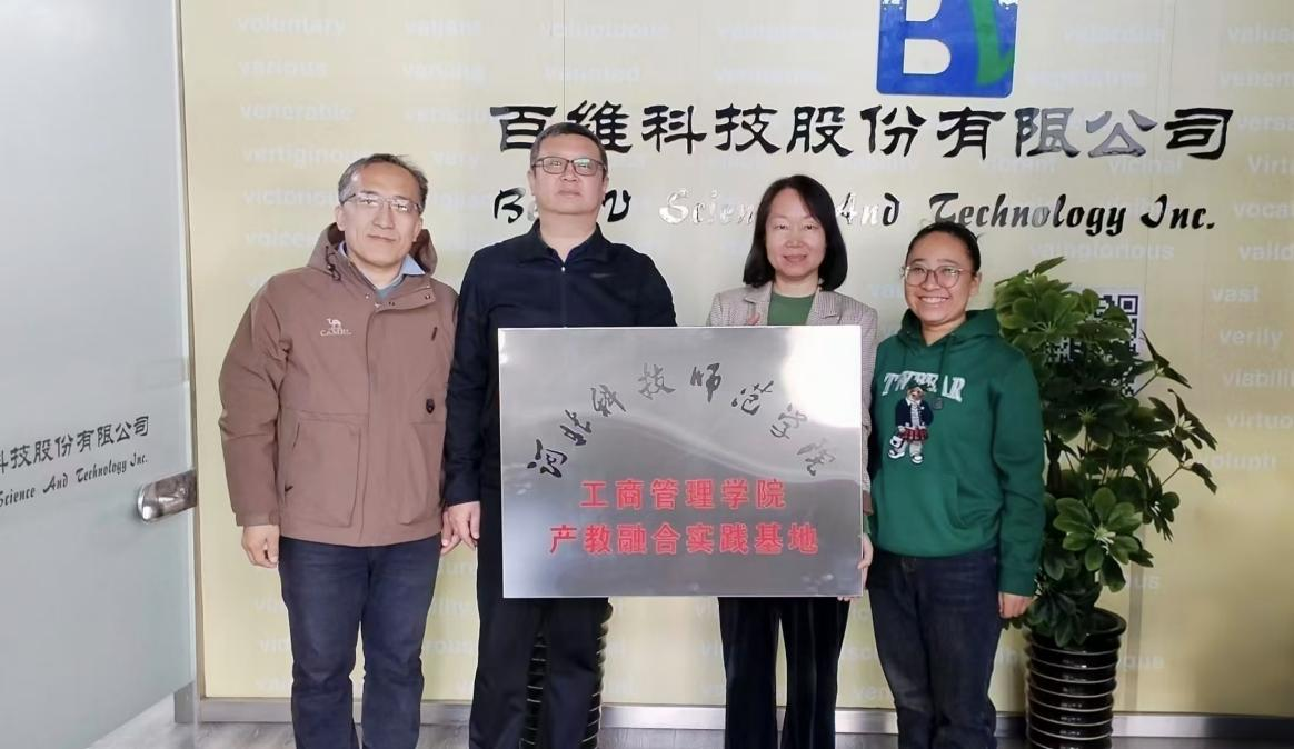 为了充分发挥高等教育为社会、行业、企业服务的功能,为加强产教融合、校企合作,2025年3月25日上午,BEAT365官网刘艳芳副院长与信息管理与信息系统专业柴朝华、李晖老师赴百维科技股份有限公司举行了产教融合深度合作挂牌活动。